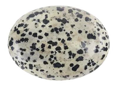 Dalmatian Jasper brings an energy of childlike joy and a sense of playfulness into your life. It aids in breaking down barriers that you have created as protection around yourself, which allows you to move forward in life. It helps you to and discover your true purpose for being here. The black spots are said to be Black Tourmaline, which will aid you in spiritual grounding and psychic protection